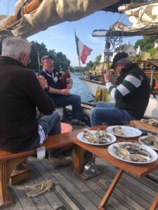 Cet évènement de l’année que tout les marins attendent avec impatience tant il est riche en belles navigations et en instants magiques dans ce décor superbe qu’offre le golfe du Morbihan. Les communes d’accueil mettent tout en oeuvre pour que les voiliers de toutes tailles et tout gabarit puissent y participer pour le plus grand plaisir de leurs équipages. La Cale 2 l’Ile était bien représentée avec le Saint Michel II (son équipage et musiciens) , Simbad II, Tramontane entre autres